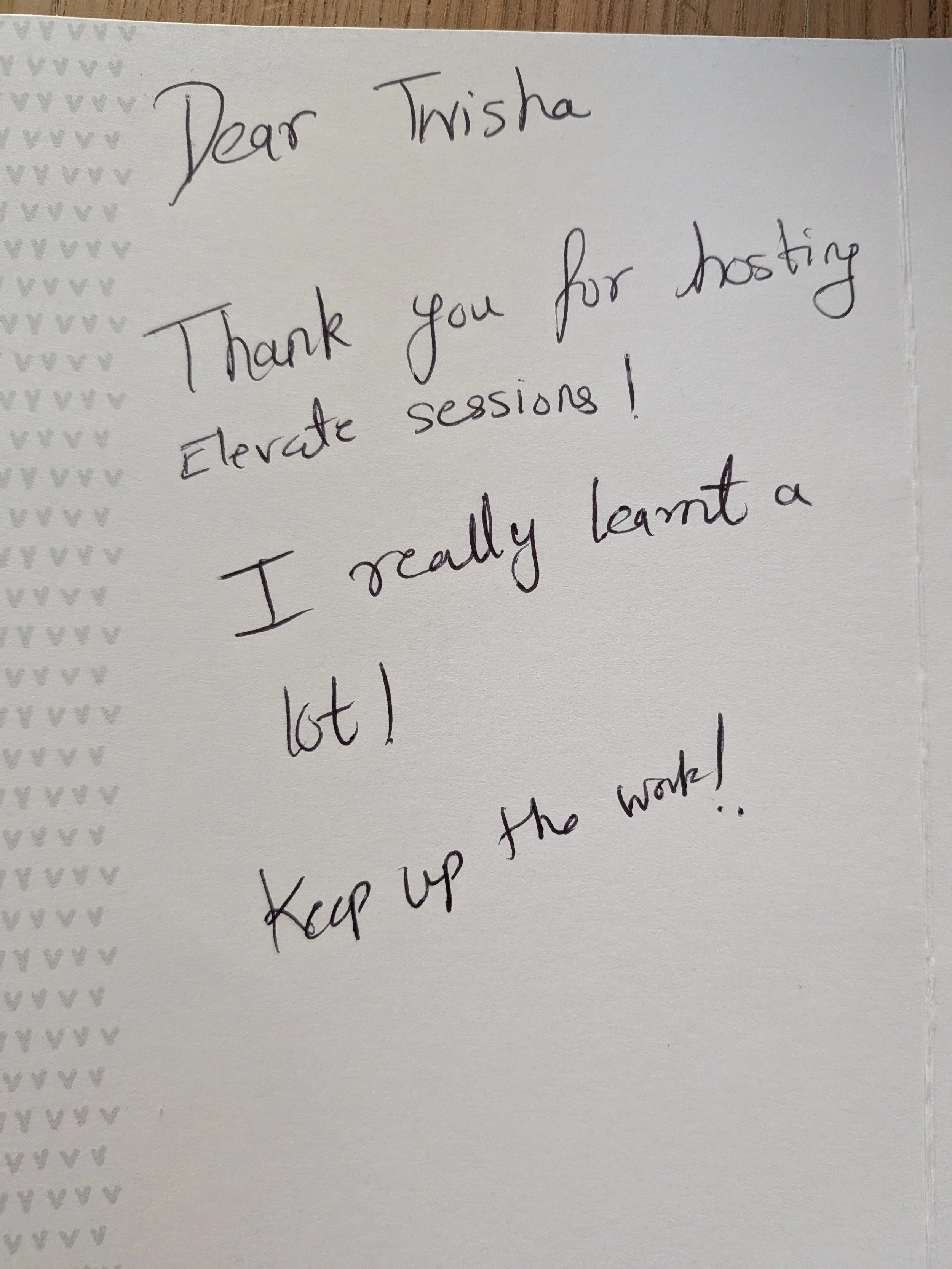 I was deeply touched to receive this handwritten note from one attendee, which perfectly captures the transformation in mindset achieved during the session.